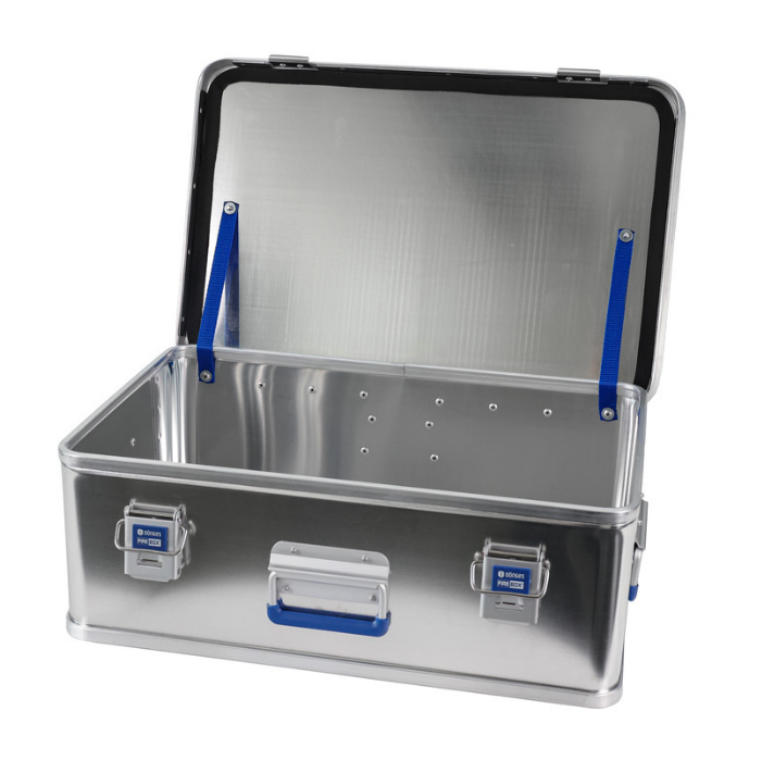 Feuerwehrwerkzeugsatzes DIN 14881 um etwa 7 kg. Die Box ist staub- und spritzwassergeschützt nach IP 44, rostfrei und langlebig dank hochfester Aluminium-Legierung. Große, ergonomische Griffe ermöglichen einfaches Tragen. Verschiedene Inneneinrichtungen sind auf Anfrage erhältlich, und die Box ist verschließbar sowie plombierbar für zusätzliche Sicherheit.